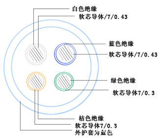 1、软芯铜导体 2、绝缘 3、编织屏蔽 4、护套